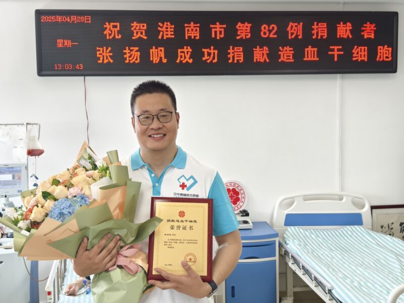 此后,张扬帆采访了淮南大多数造血干细胞捐献者的相关活动,每一次都加深了他对捐献的向往。2023年,安徽省“捐献生命的种子走进淮南”活动中,捐献者与受捐者家庭见面的感人场景,让他更加坚定了信念。