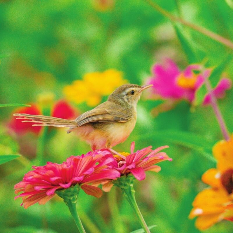 百日菊花語文化——百日菊有許多別名,每個別名都承載著一種文化意義:因其第一朵花通常在頂端開放,隨后側枝花朵逐層向上綻放,故而又名“步步高”或“節節高”,象征積極向上;因其花序密集,顏色鮮艷,如同被火焰包裹的氈毯,故而又名“火氈花”,象征熱情似火;因其花期綿長,從夏延續到秋,長達數月,故而又名“百日草”,象征青春長駐;因其葉片尖端形似魚尾,取“魚”即“余”的諧音,故而又稱“魚尾菊”,象征生意亨通。百日菊花色艷麗,不同色彩寓含不同意義:白色寓意純潔、美好和善良;黃色寓意日常問候與關注;紅色寓意持續的愛;粉色寓意愛情和關懷;紫色寓意浪漫和愛情;緋紅色寓意愛情的牢固和持久;各色百日菊混搭成花束,則表達對親朋的緬懷和思念。