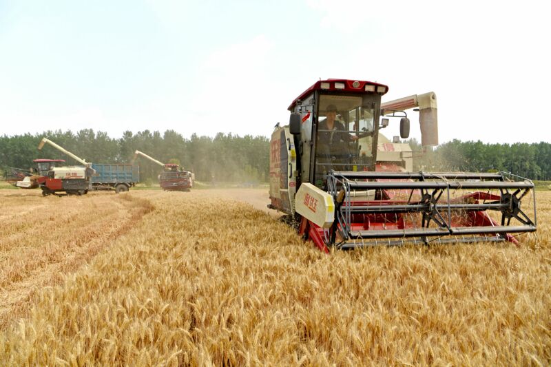 麥收時節,各地農民搶抓農時搶收小麥,確保顆粒歸倉。